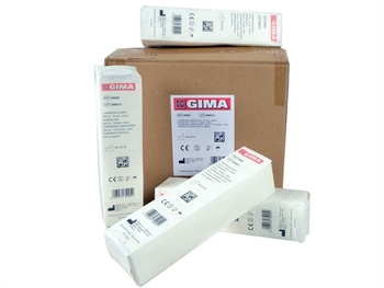 Compresse garza puro cotone, 20 fili, filato 40/40 piegato e orlato, non sterile, senza filo radiopaco, confezionati in pacchetti da 100 pz.