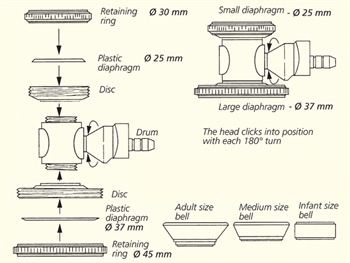 5 strumenti in 1 per 5 tipi diversi di auscultazione. Questo stetoscopio in lega di zinco comprende un una testina cromata con campane di diverse grandezze che si adattano all’auscultazione di bambini e adulti per un’ampia gamma di suoni di cuore e polmoni. Testa con membrana grande e piccola.