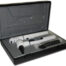 Set diagnostici professionali con sistema di illuminazione alogeno/xenon a fibra ottica da 2.5V, reostato per regolare l’intensità della luce. Alimentato con batterie Li-ion ricaricabili. Tutti i prodotti sono in plastica rinforzata resistente all’urto e sistema di blocco per l’uso ospedaliero. Fornito in valigetta di plastica rigida, necessita di una batteria