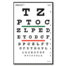 Tavola optometrica di TUMBLING per acuità visiva con lettera “E” e barra a colori.