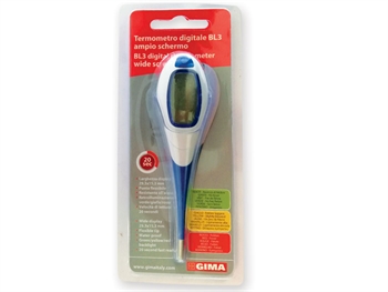 TERMOMETRO DIGITALE BL3 AMPIO SCHERMO – blister, punta flessibile, impermeabile, retroilluminazione rossa/arancione/verde, ampio schermo 29,3 x 15,3 mm.