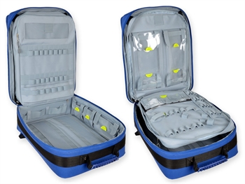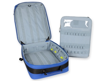 – 2 tasche esterne con elastici e strisce in velcro: una 35 x 16 cm, una 35 x 32 cm con 4 tasche interne trasparenti
